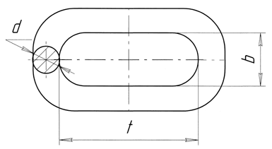 Типоразмер цепи Толщина прутка d, мм Шаг цепи t, мм Внутренняя ширина звена b, мм Масса 1м цепи, кг