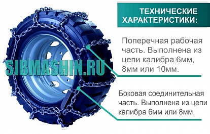 Цепи противоскольжения представляют собой сетку из круглозвенных цепей равномерно оплетающую шину по всей окружности. По сути это съемный протектор способный превратить обычную дорожную покрышку в колесо для бездорожья. Состоит из двух продольных цепей, проходящих по внутренней и наружной окружностям колеса соединенных поперечными цепями.