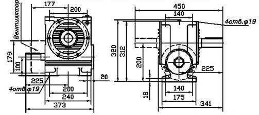 Габаритные и присоединительные размеры редуктора Ч 100