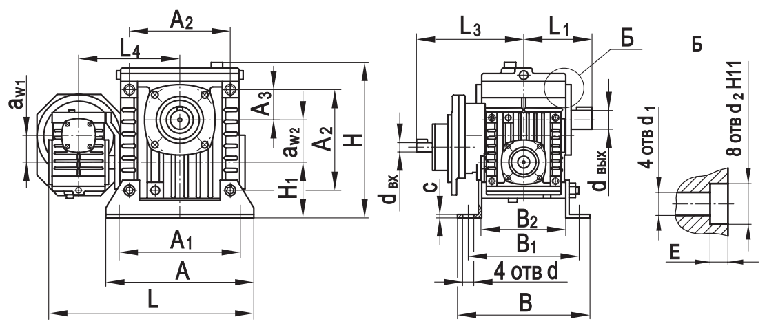 Типоразмер аW1 аW2 А А1 А2 А3 В В1 В2 L* L1* L2max L3* L4 Н Н1 сd d 1 d2 Еd вх dвых