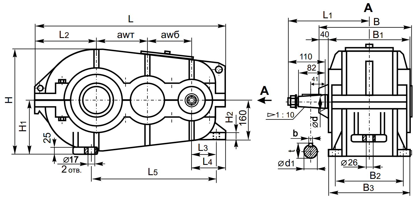 • 400 – Межосевое расстояние второй ступени;
