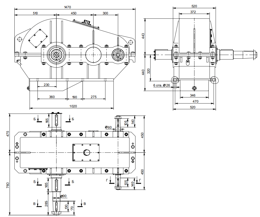 Цилиндрический редуктор ГК-750